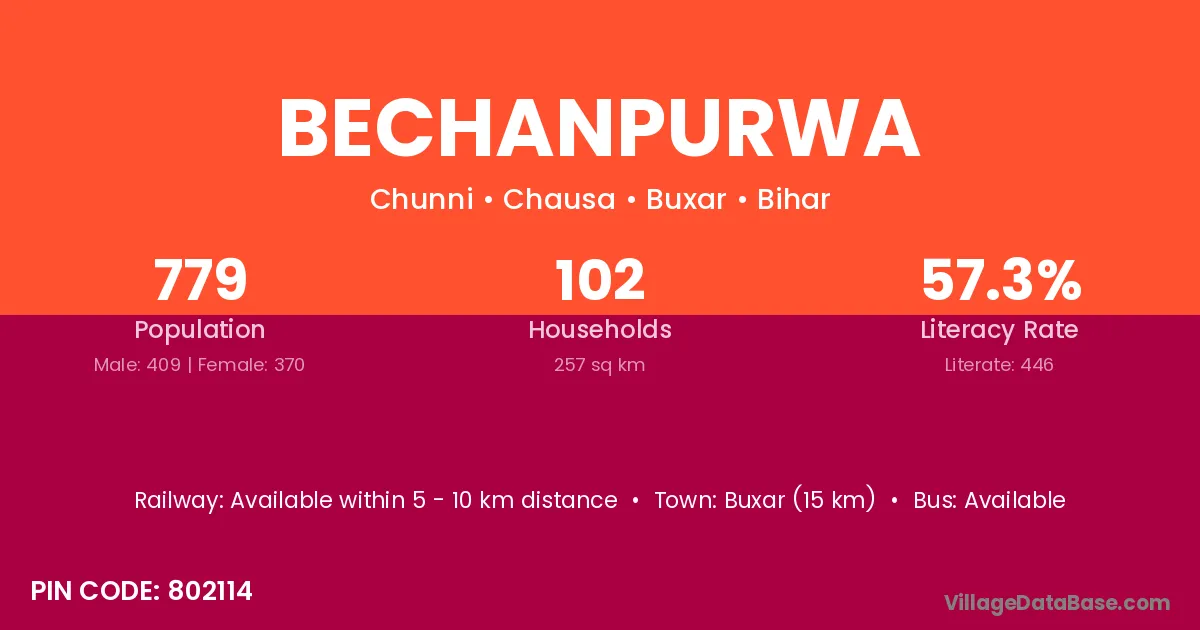 Buxar (15 km) is the nearest town to Bechanpurwa village for major economic activities and is located approximately 15 km away.