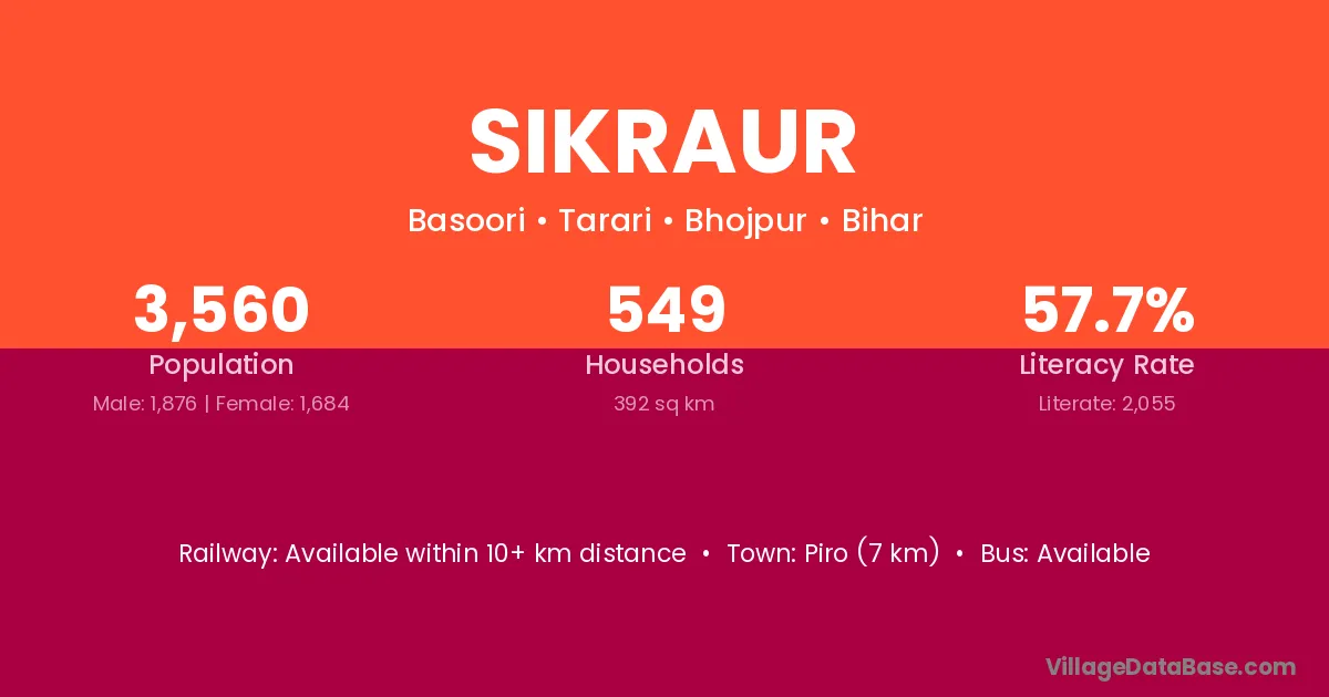 Buxar (15 km) is the nearest town to Sikraur village for major economic activities and is located approximately 15 km away.