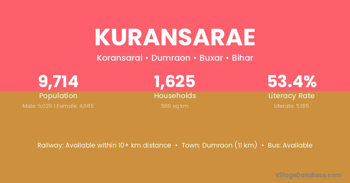 Dumraon (11 km) is the nearest town to Kuransarae village for major economic activities and is located approximately 11 km away.