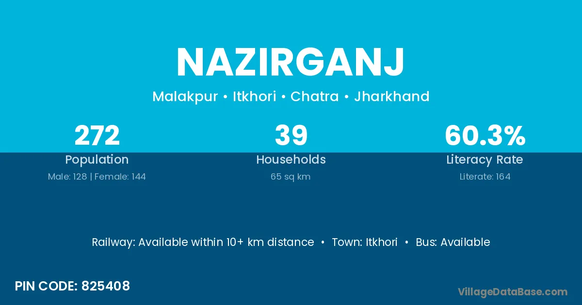 Dumraon (15 km) is the nearest town to Nazirganj village for major economic activities and is located approximately 15 km away.
