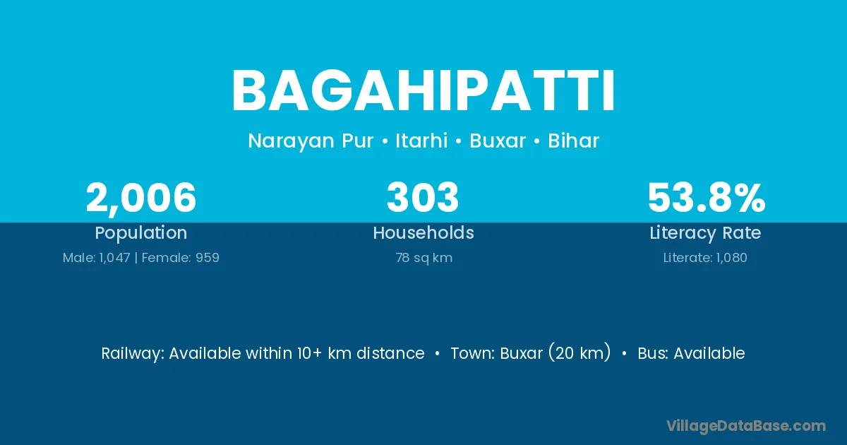 Buxar (20 km) is the nearest town to Bagahipatti village for major economic activities and is located approximately 20 km away.