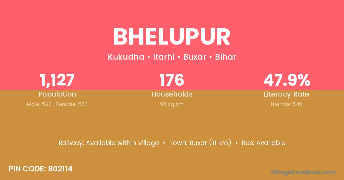 Buxar (11 km) is the nearest town to Bhelupur village for major economic activities and is located approximately 11 km away.