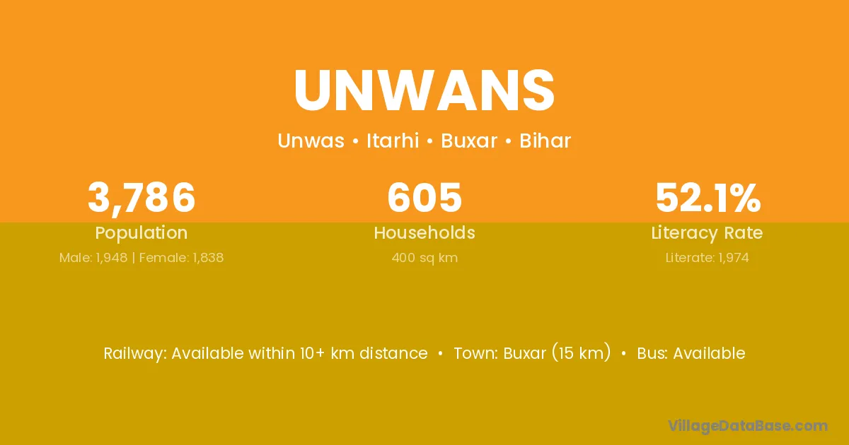 Buxar (15 km) is the nearest town to Unwans village for major economic activities and is located approximately 15 km away.