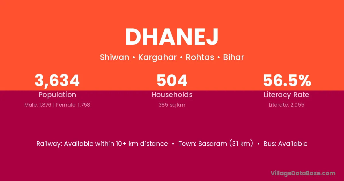Domraon (24 km) is the nearest town to Dhanej village for major economic activities and is located approximately 24 km away.