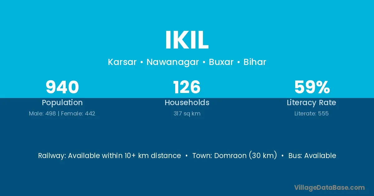 Domraon (30 km) is the nearest town to Ikil village for major economic activities and is located approximately 30 km away.