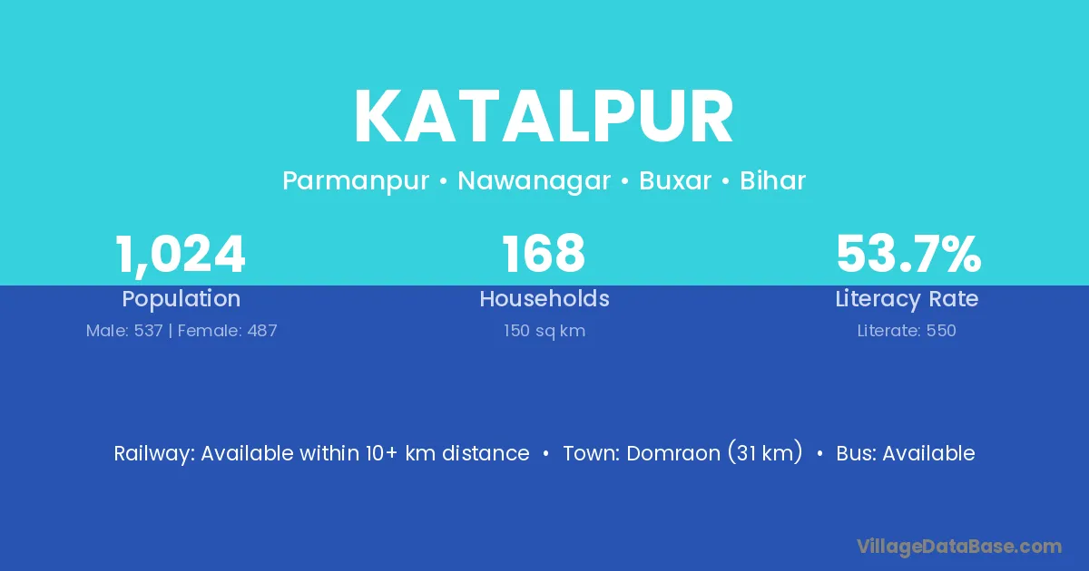 Domraon (31 km) is the nearest town to Katalpur village for major economic activities and is located approximately 31 km away.