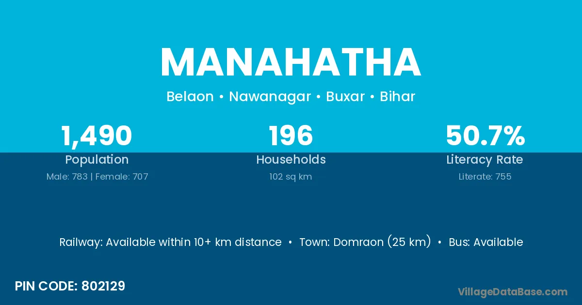 Domraon (25 km) is the nearest town to Manahatha village for major economic activities and is located approximately 25 km away.