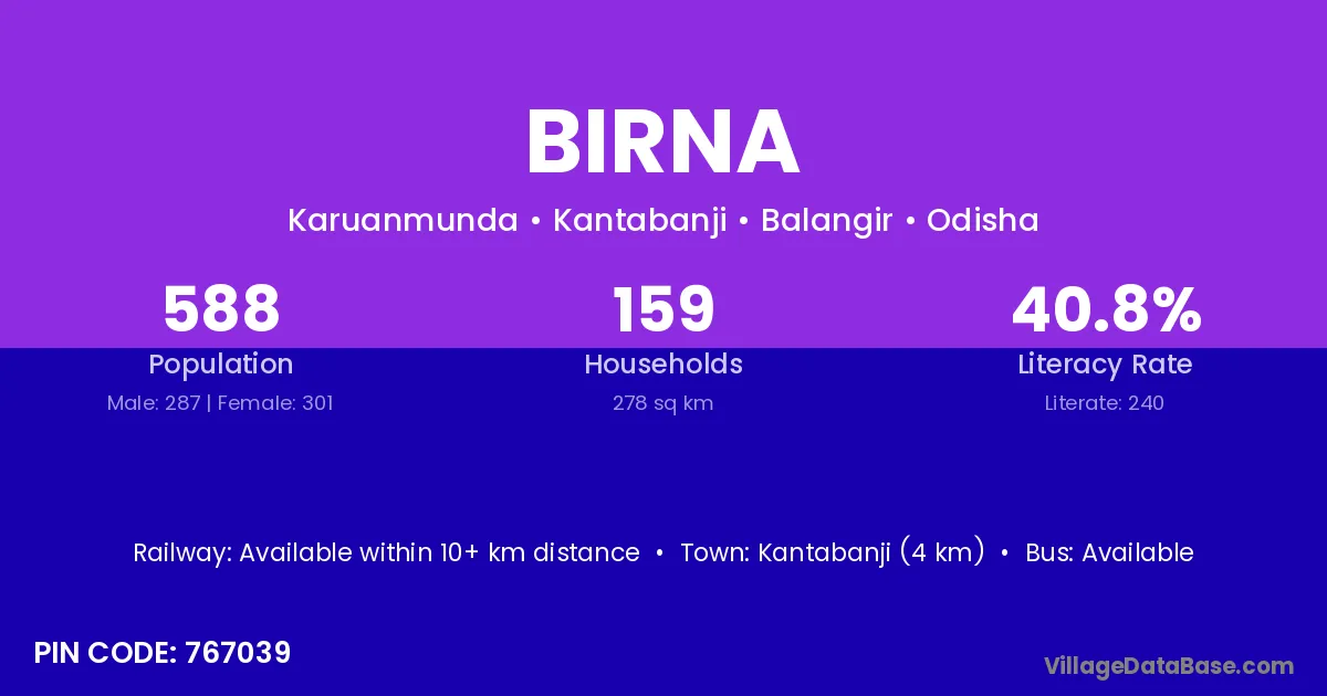 Birna village has a total population of 1,135 people, of which 601 are males and 534 are females.