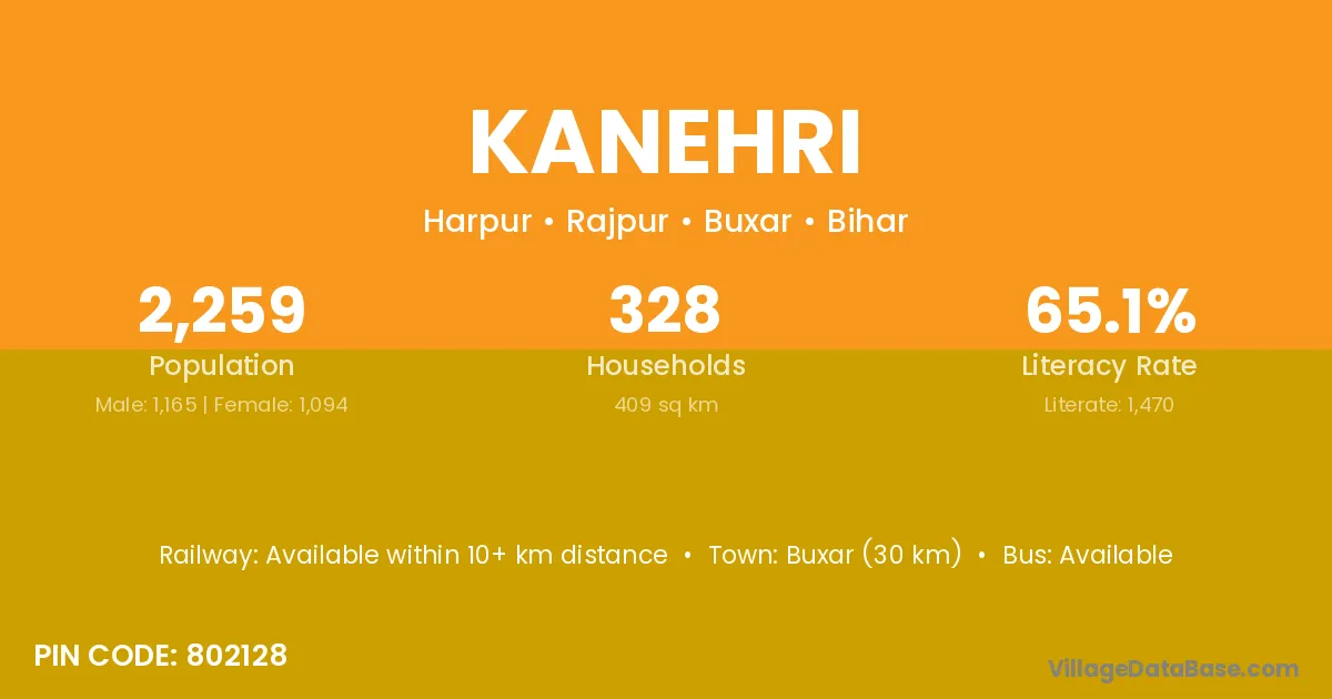 Buxar (30 km) is the nearest town to Kanehri village for major economic activities and is located approximately 30 km away.