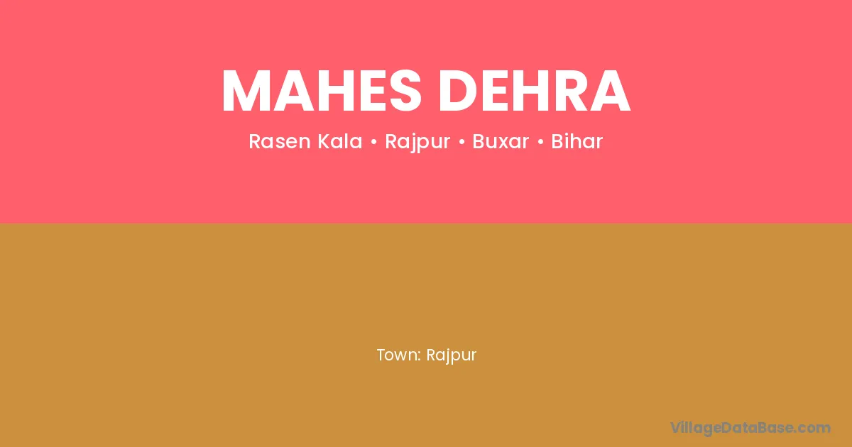 Mahes Dehra village is located in the Rajpur Subdivision of the Buxar district in Bihar .