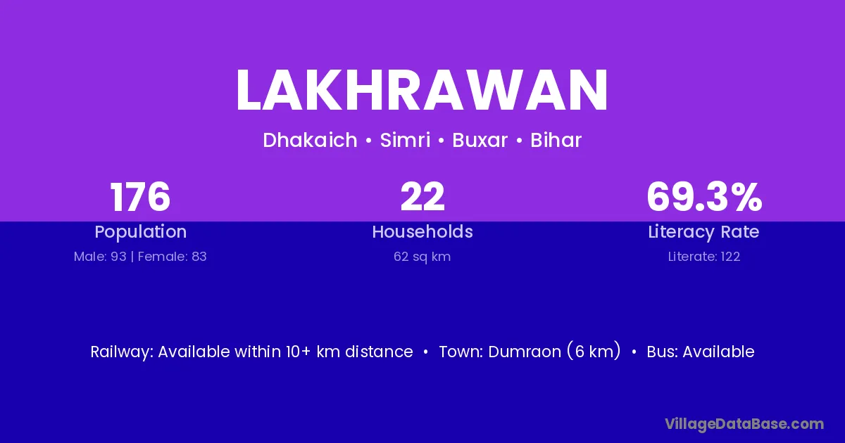 Dumraon (6 km) is the nearest town to Lakhrawan village for major economic activities and is located approximately 6 km away.