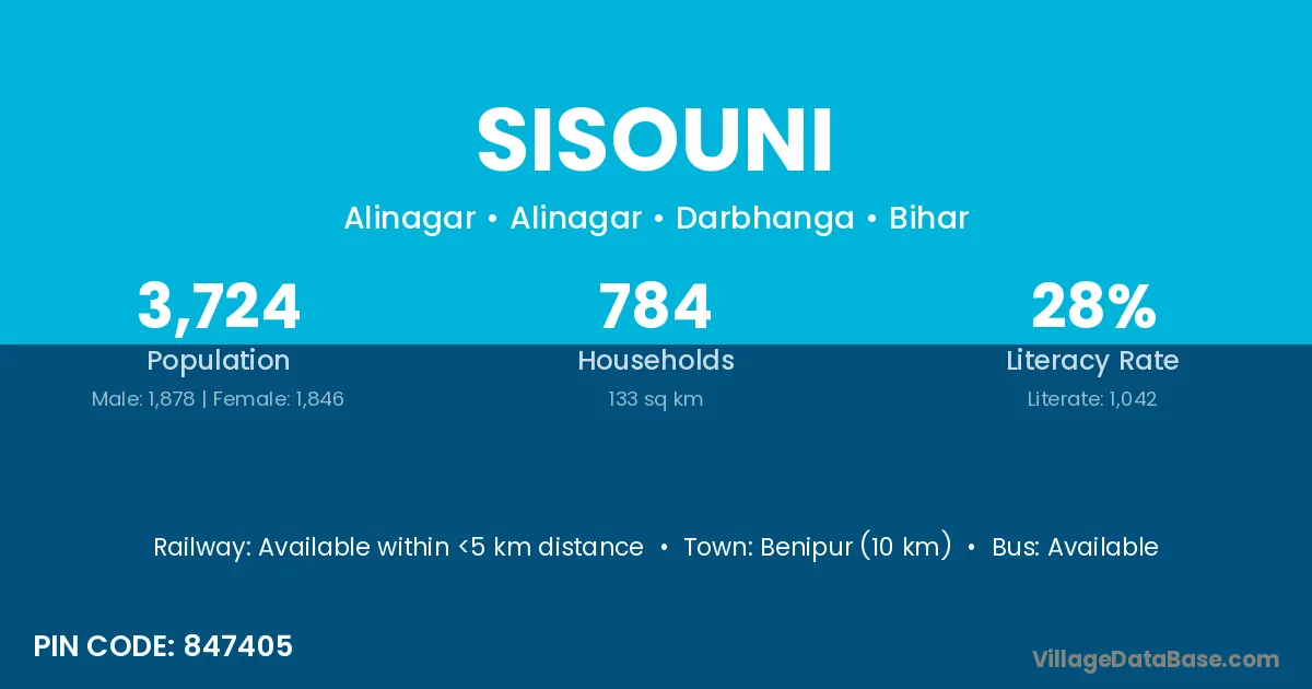Sisouni village is located in the Alinagar Subdivision of the Darbhanga district in Bihar .