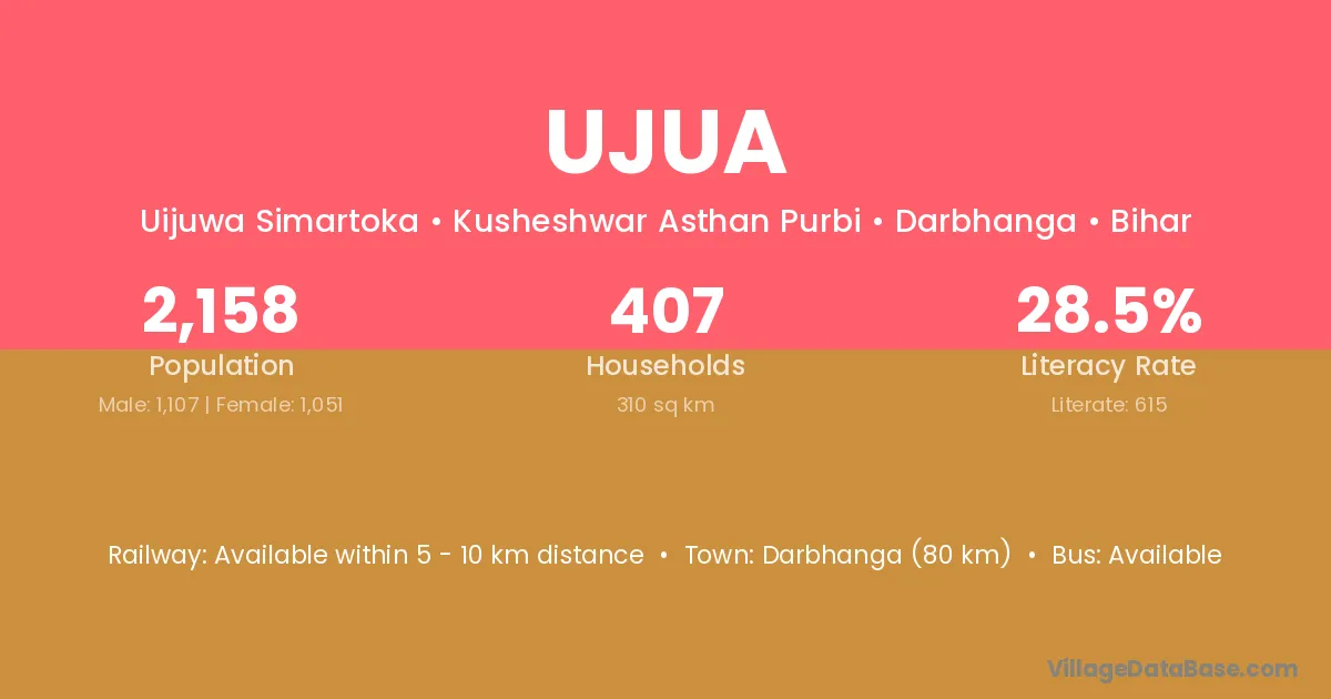 Darbhanga (80 km) is the nearest town to Ujua village for major economic activities and is located approximately 80 km away.