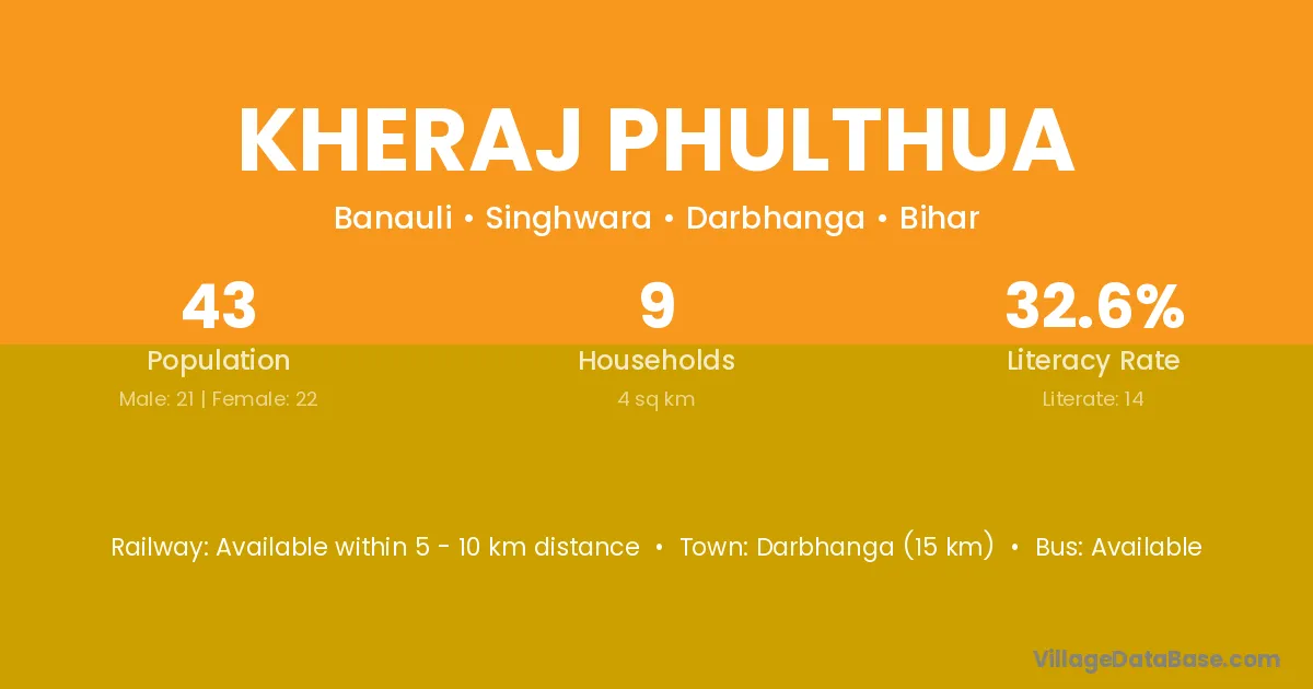 Kheraj Phulthua village has a total population of 43 people, of which 21 are males and 22 are females.