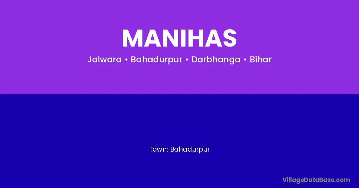 Darbhanga (20 km) is the nearest town to Manihas village for major economic activities and is located approximately 20 km away.