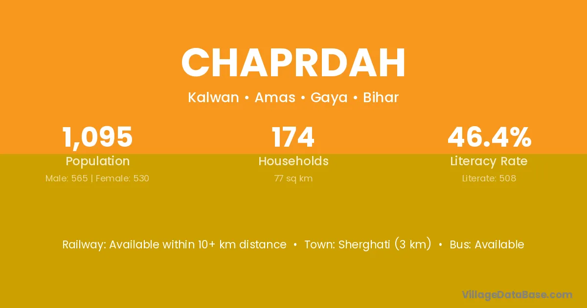Sherghati (3 km) is the nearest town to Chaprdah village for major economic activities and is located approximately 3 km away.