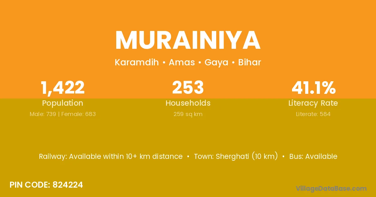 Sherghati (10 km) is the nearest town to Murainiya village for major economic activities and is located approximately 10 km away.