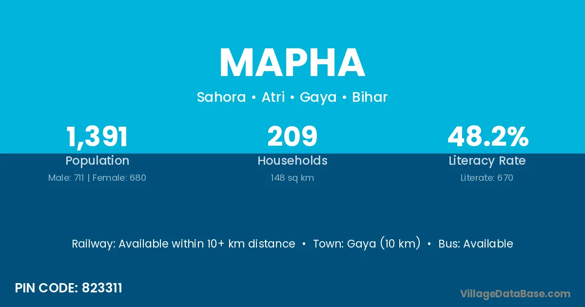 Gaya (10 km) is the nearest town to Mapha village for major economic activities and is located approximately 10 km away.