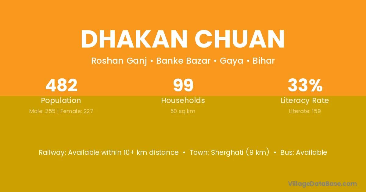 Sherghati (9 km) is the nearest town to Dhakan Chuan village for major economic activities and is located approximately 9 km away.