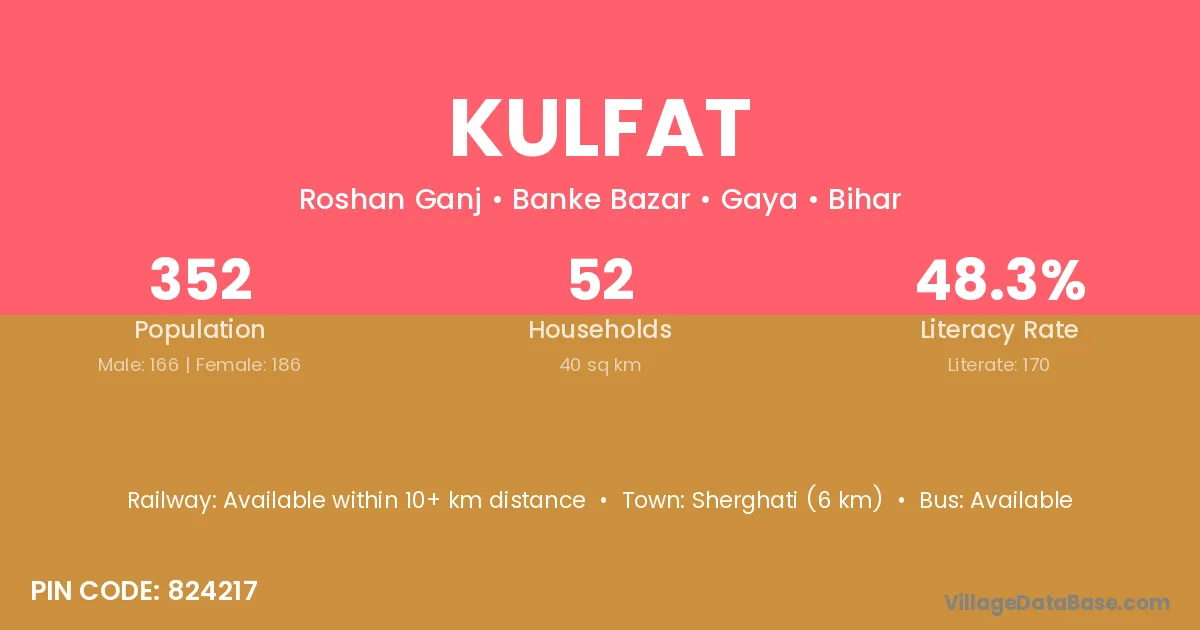 Sherghati (6 km) is the nearest town to Kulfat village for major economic activities and is located approximately 6 km away.