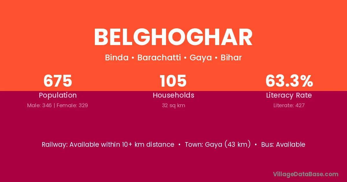 Gaya (43 km) is the nearest town to Belghoghar village for major economic activities and is located approximately 43 km away.