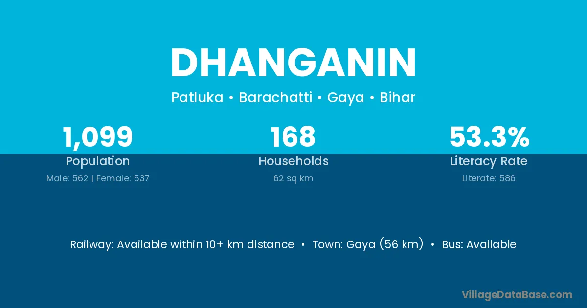Gaya (56 km) is the nearest town to Dhanganin village for major economic activities and is located approximately 56 km away.