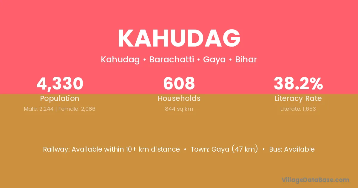 Gaya (47 km) is the nearest town to Kahudag village for major economic activities and is located approximately 47 km away.