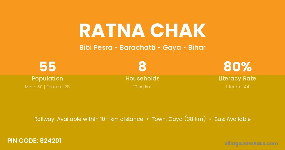Gaya (38 km) is the nearest town to Ratna Chak village for major economic activities and is located approximately 38 km away.
