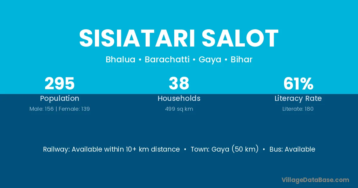 Gaya (50 km) is the nearest town to Sisiatari Salot village for major economic activities and is located approximately 50 km away.
