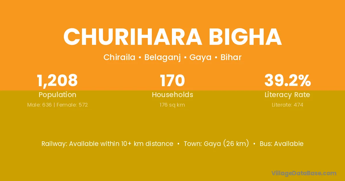 Gaya (26 km) is the nearest town to Churihara Bigha village for major economic activities and is located approximately 26 km away.