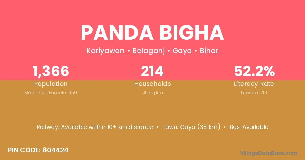 Gaya (38 km) is the nearest town to Panda Bigha village for major economic activities and is located approximately 38 km away.