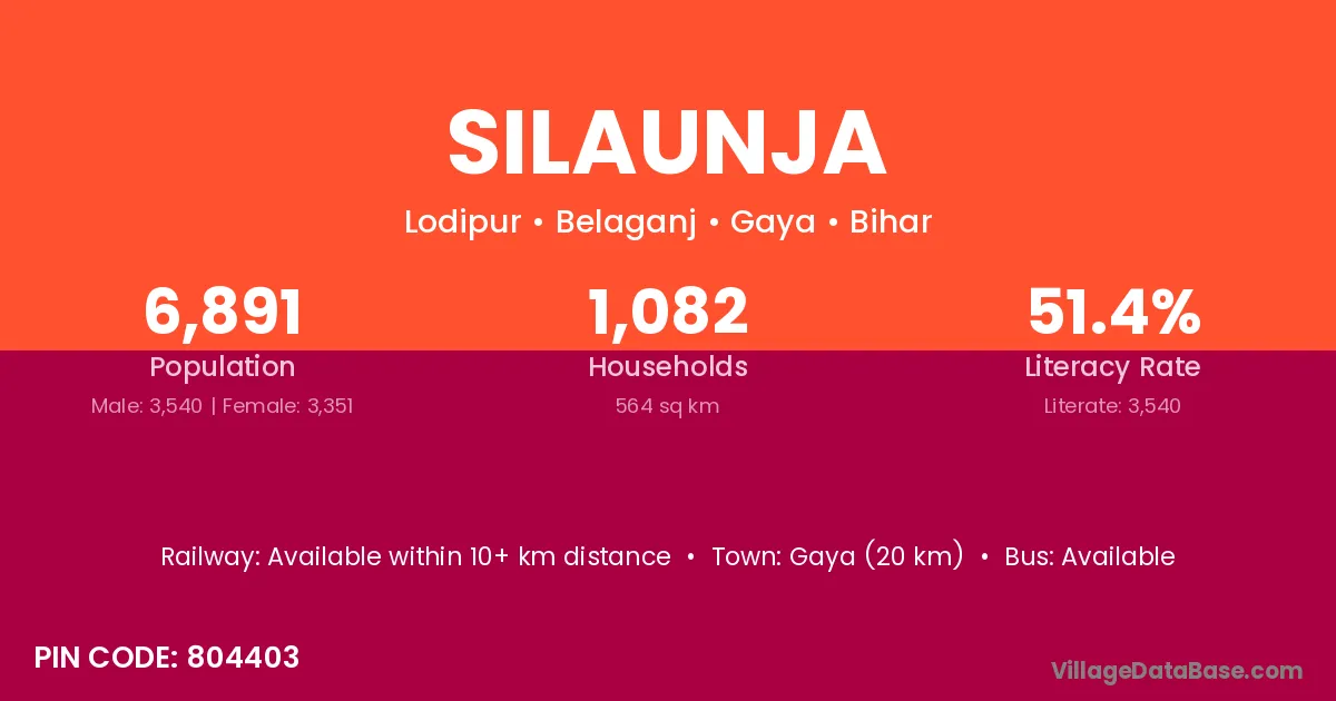 Gaya (20 km) is the nearest town to Silaunja village for major economic activities and is located approximately 20 km away.