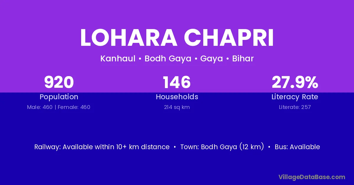 Bodh Gaya (12 km) is the nearest town to Lohara Chapri village for major economic activities and is located approximately 12 km away.