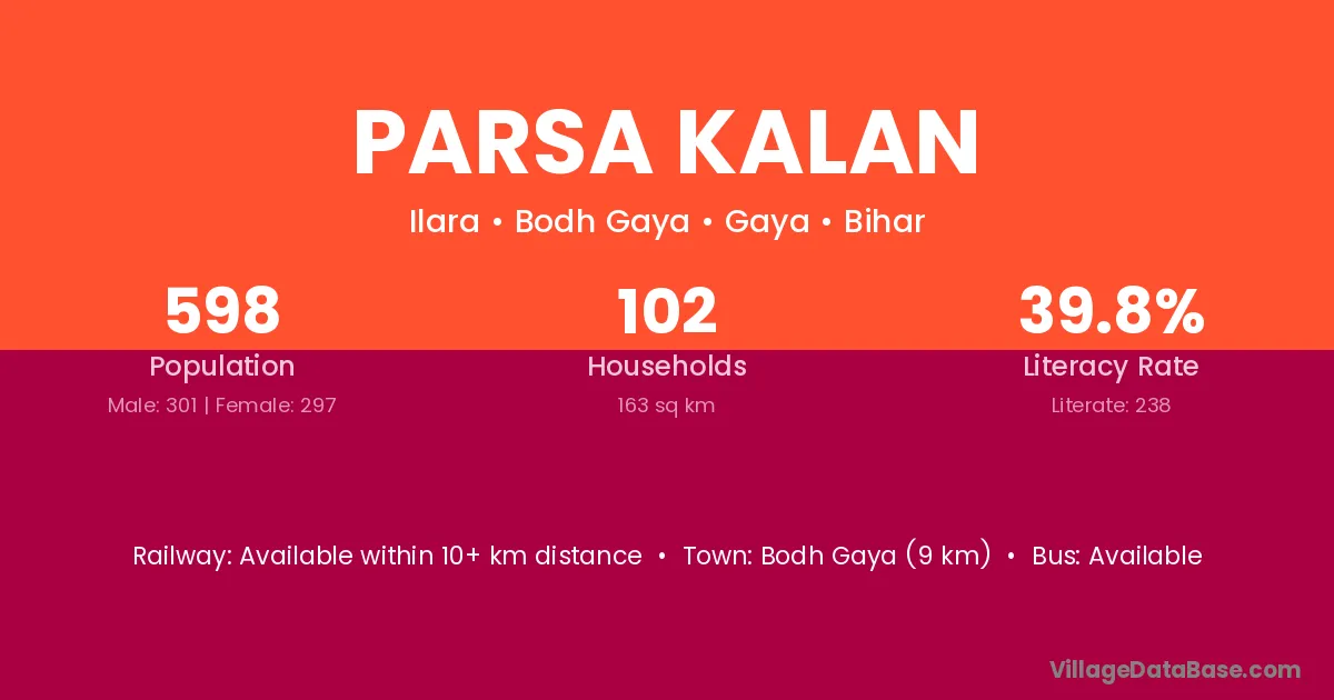 Parsa Kalan village has a total population of 598 people, of which 301 are males and 297 are females.