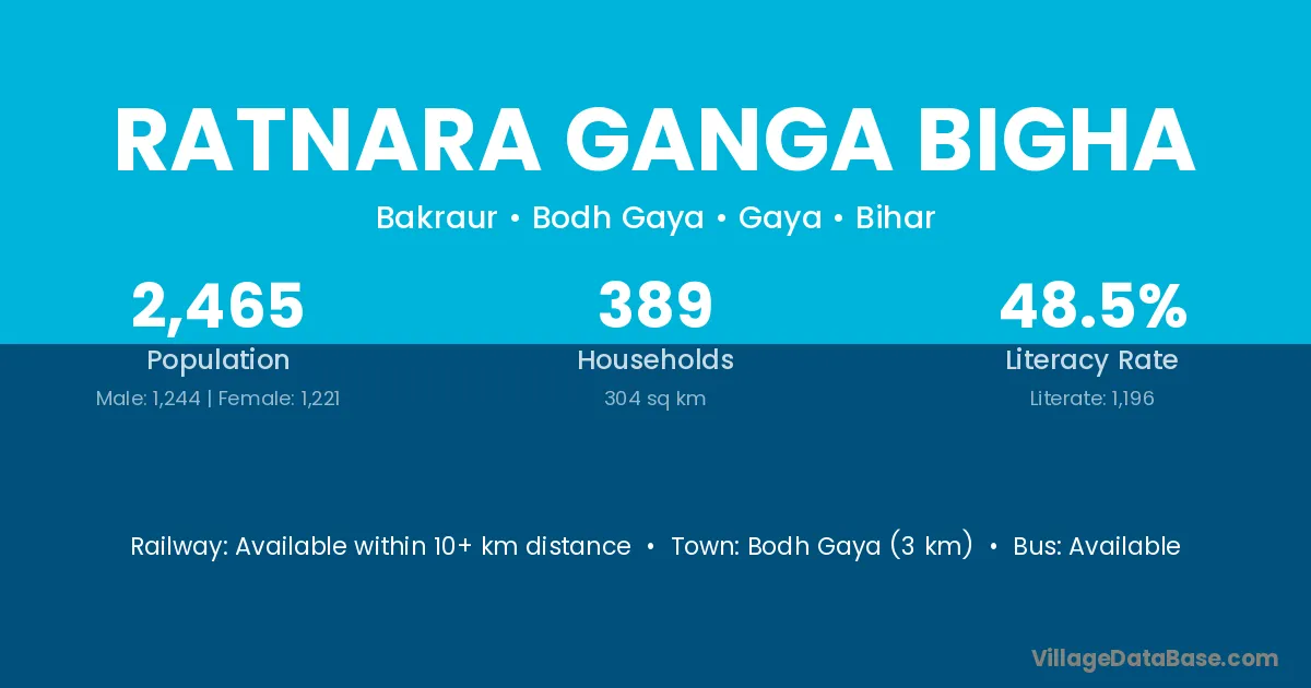 Bodh Gaya (3 km) is the nearest town to Ratnara Ganga Bigha village for major economic activities and is located approximately 3 km away.