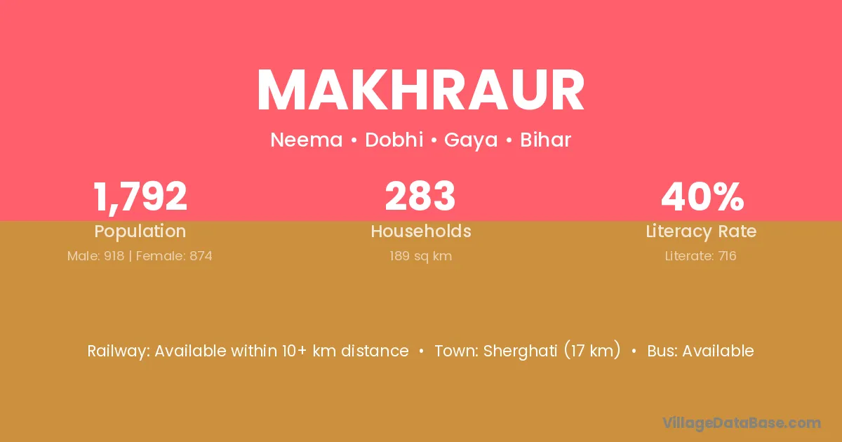 Sherghati (17 km) is the nearest town to Makhraur village for major economic activities and is located approximately 17 km away.