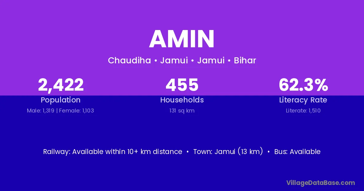 Gaya (37 km) is the nearest town to Amin village for major economic activities and is located approximately 37 km away.