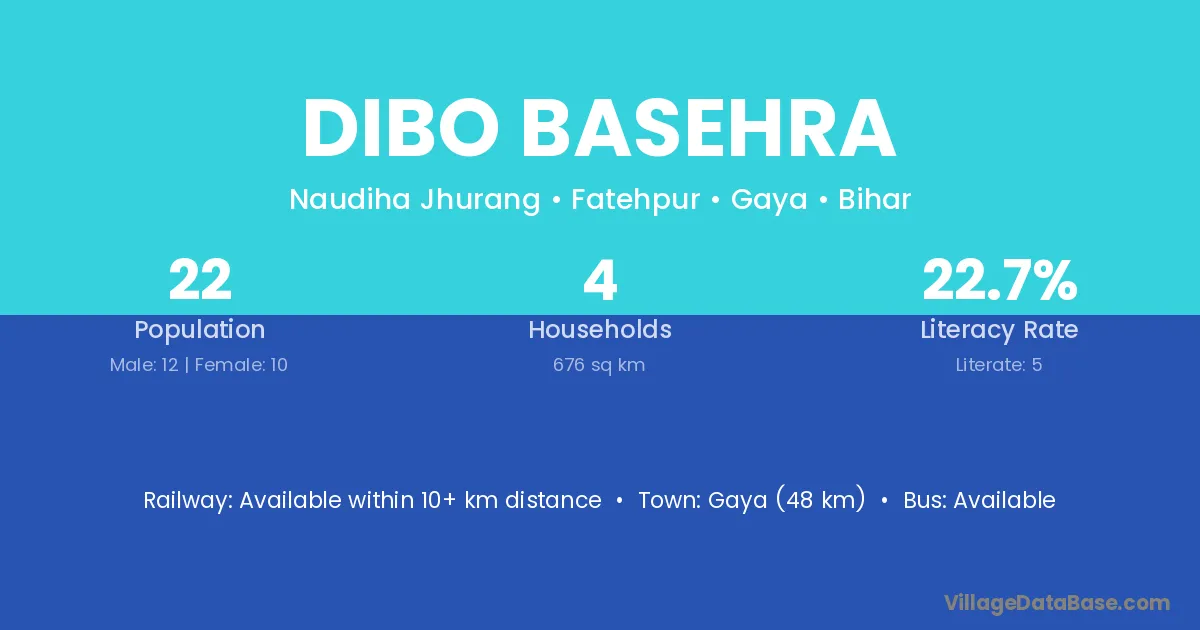 Gaya (48 km) is the nearest town to Dibo Basehra village for major economic activities and is located approximately 48 km away.