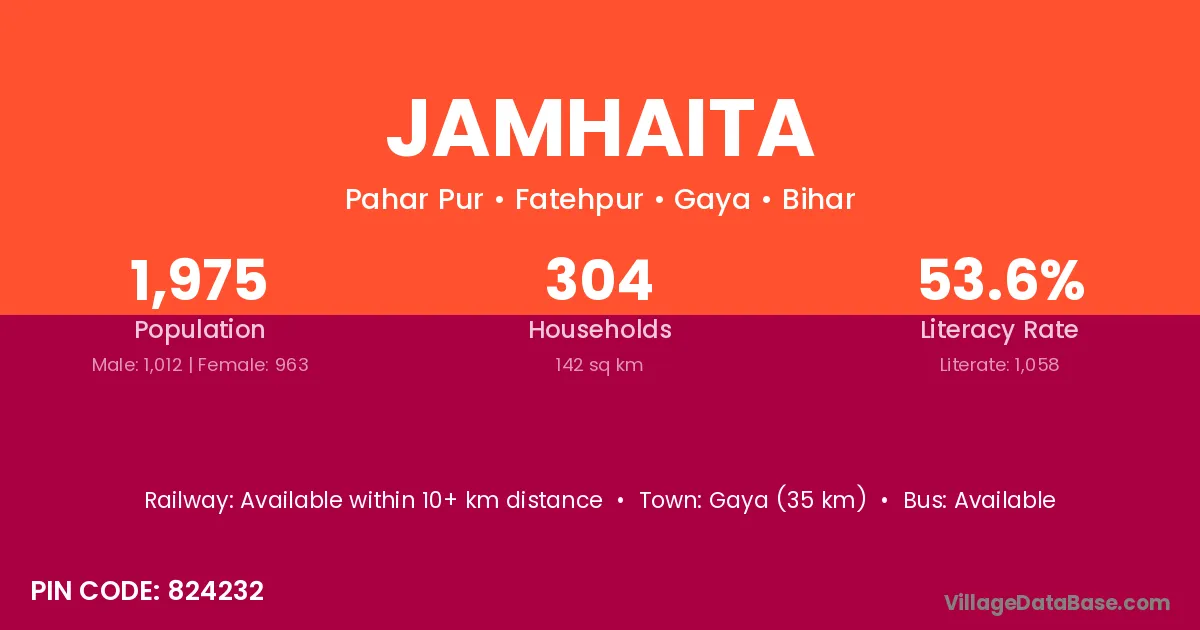 Gaya (35 km) is the nearest town to Jamhaita village for major economic activities and is located approximately 35 km away.