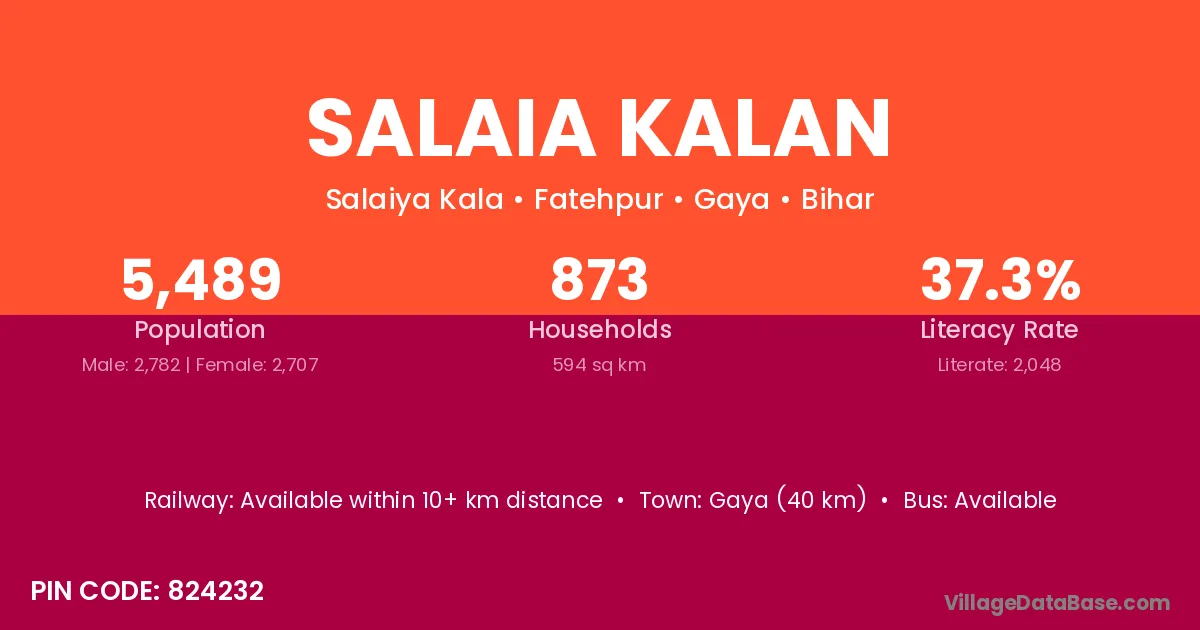 Gaya (40 km) is the nearest town to Salaia Kalan village for major economic activities and is located approximately 40 km away.