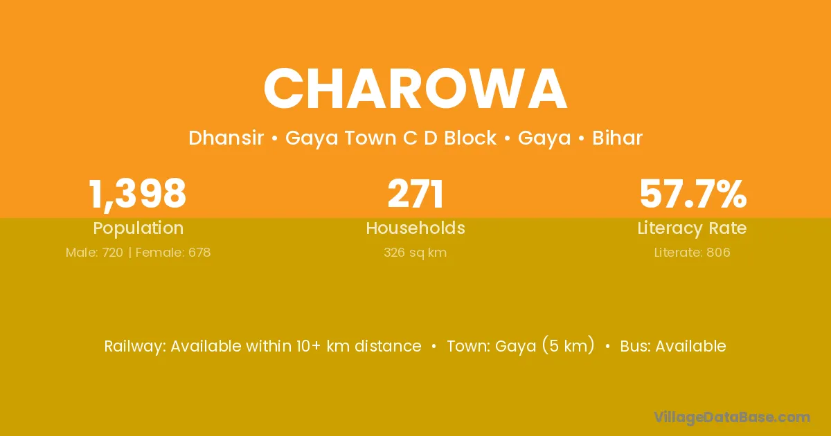 Gaya (5 km) is the nearest town to Charowa village for major economic activities and is located approximately 5 km away.