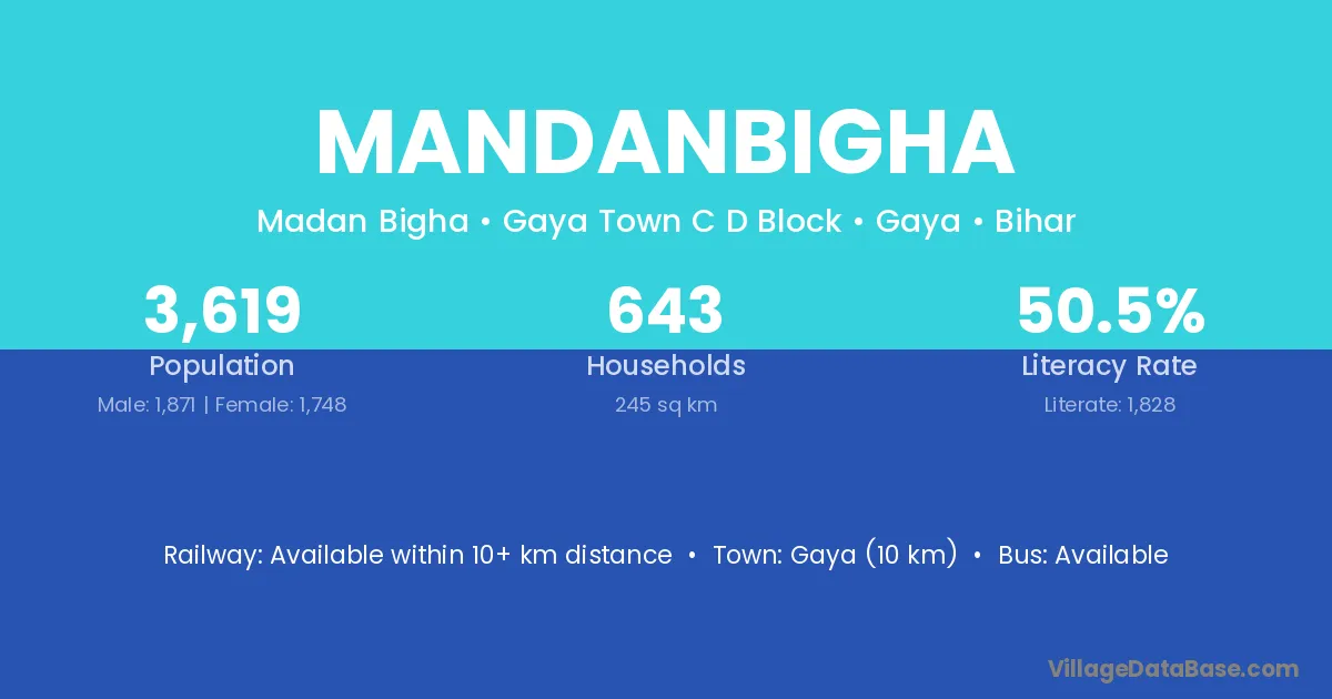 Gaya (10 km) is the nearest town to Mandanbigha village for major economic activities and is located approximately 10 km away.