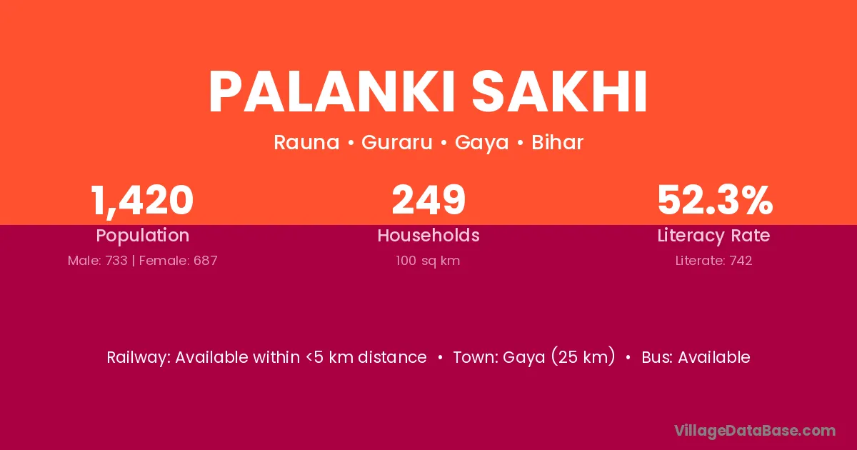 Gaya (25 km) is the nearest town to Palanki Sakhi village for major economic activities and is located approximately 25 km away.