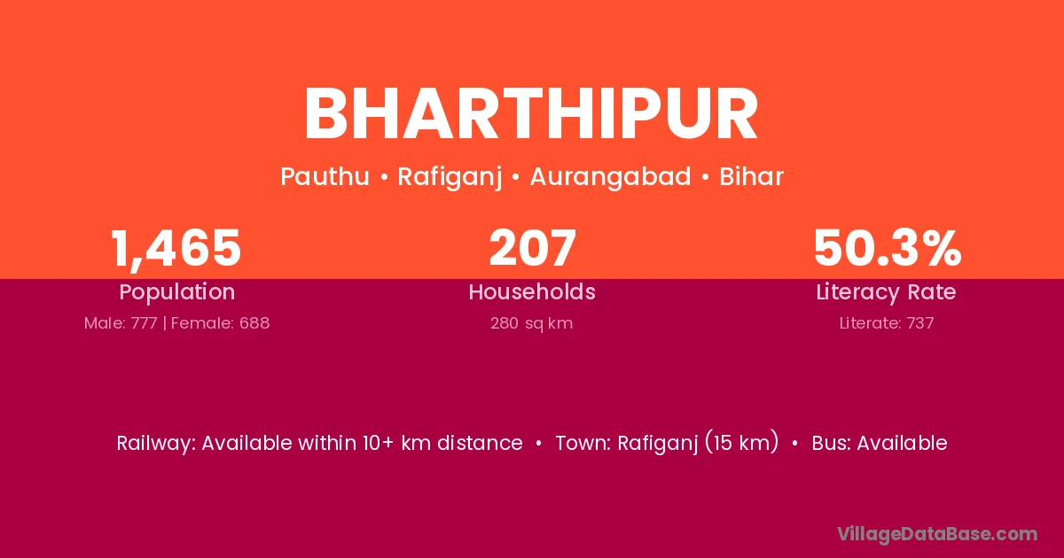 Sherghati (20 km) is the nearest town to Bharthipur village for major economic activities and is located approximately 20 km away.