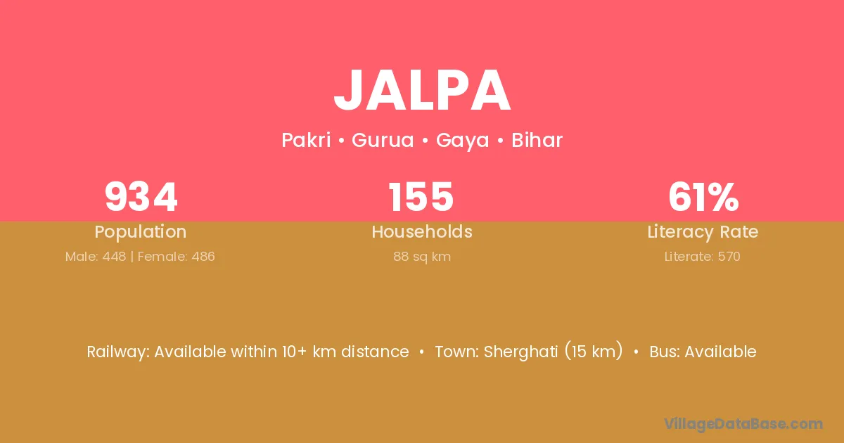 Sherghati (15 km) is the nearest town to Jalpa village for major economic activities and is located approximately 15 km away.