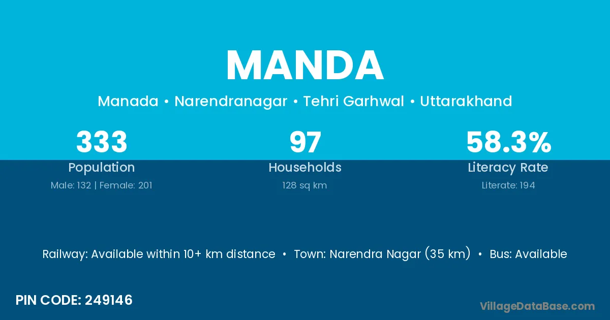 According to Census 2011 information, the village code of Manda village is 824205.