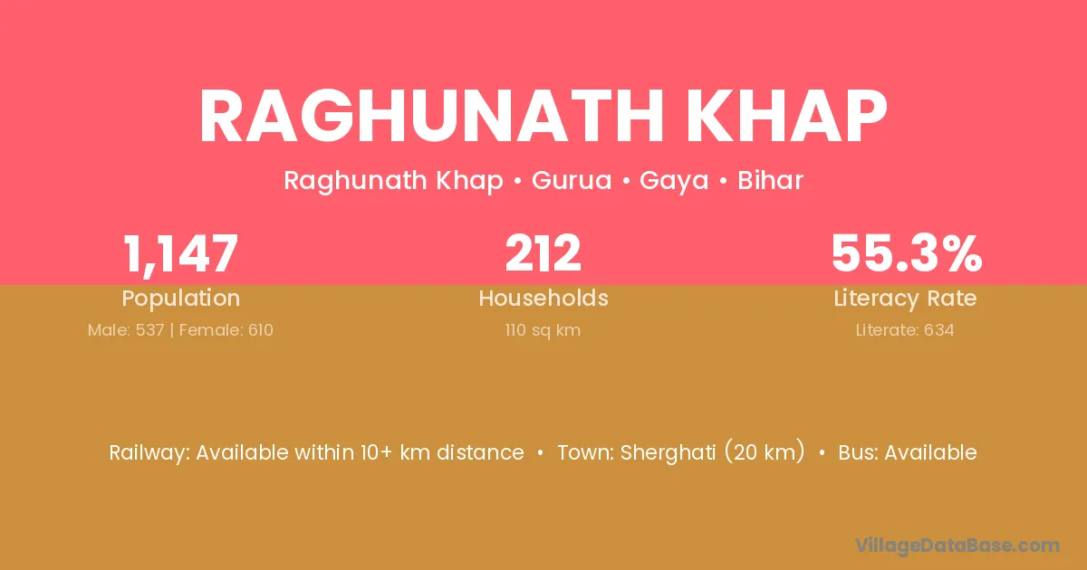 Sherghati (20 km) is the nearest town to Raghunath Khap village for major economic activities and is located approximately 20 km away.