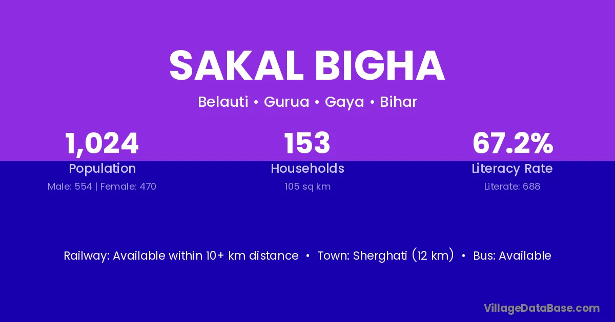 Sherghati (12 km) is the nearest town to Sakal Bigha village for major economic activities and is located approximately 12 km away.