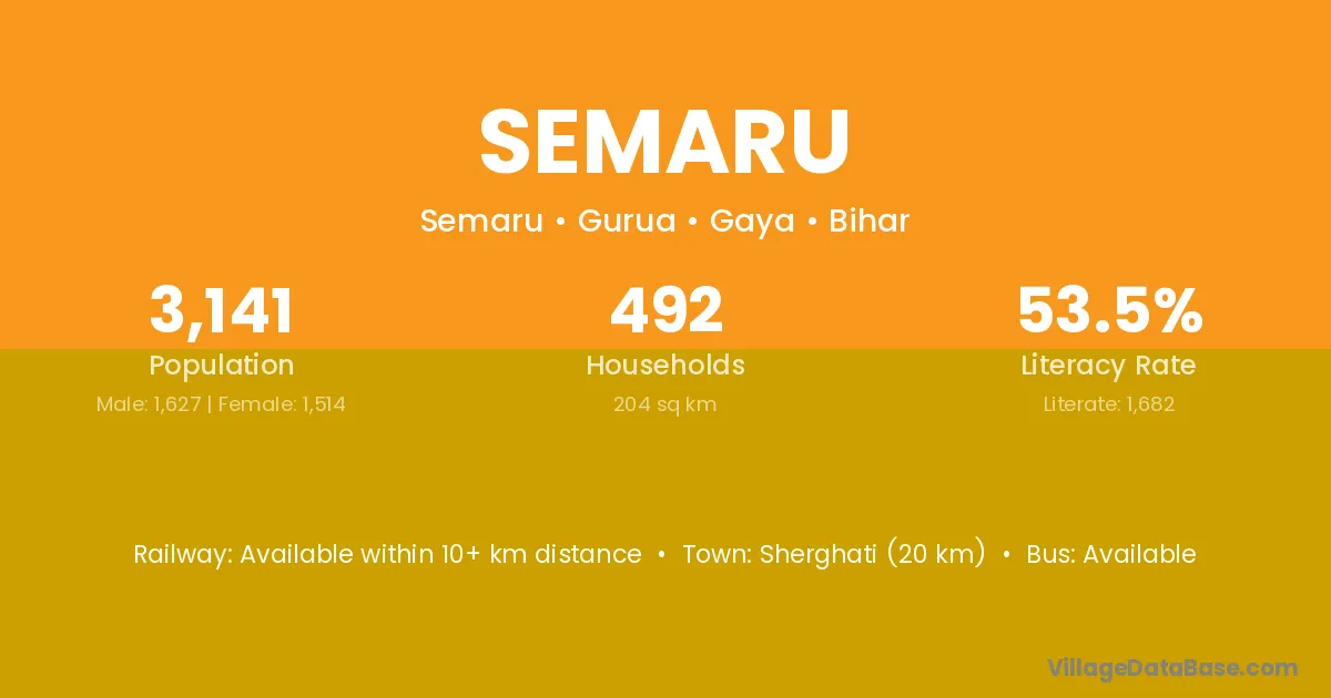 Sherghati (20 km) is the nearest town to Semaru village for major economic activities and is located approximately 20 km away.