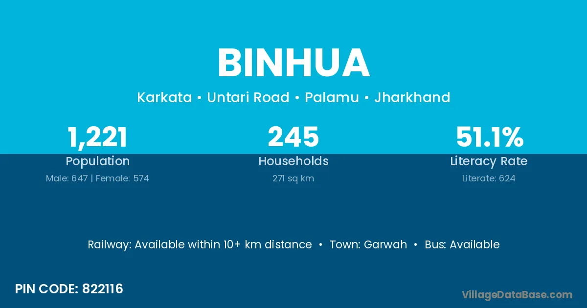 Sherghati (41 km) is the nearest town to Binhua village for major economic activities and is located approximately 41 km away.